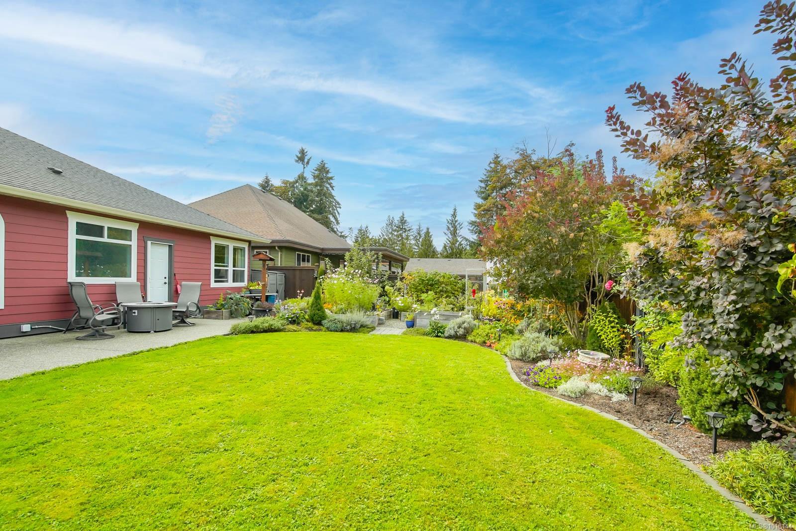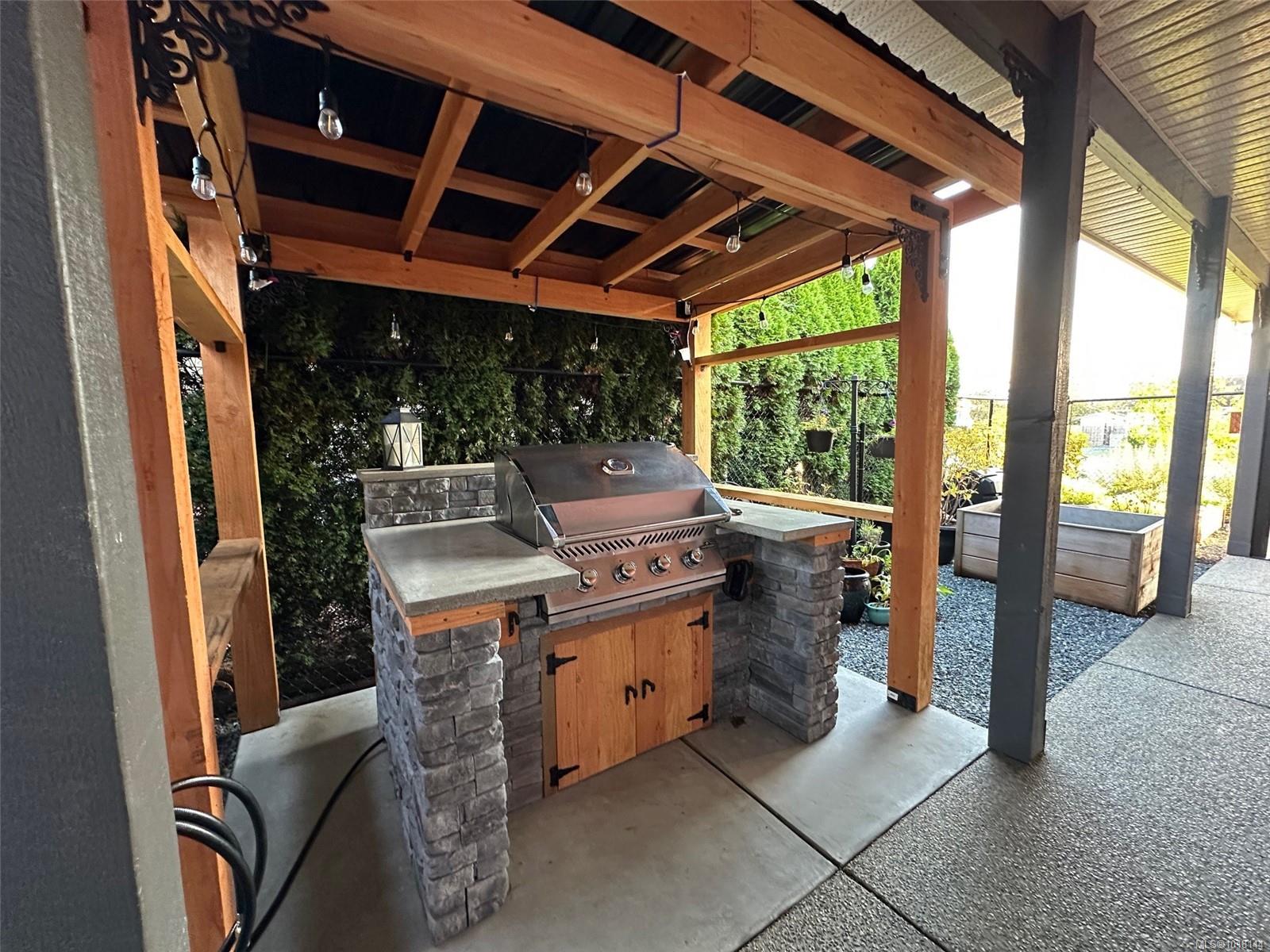 .... The fully fenced backyard is meticulously landscaped, featuring an irrigation system, raised garden beds, fruit trees, blueberry & raspberry bushes, flower gardens, and covered BBQ area adjacent to the side yard with additional garden beds and a storage shed. Recent upgrades include a gas furnace, heat pump, gas cooktop, and fireplace, all approximately three years old. This property is conveniently located near walking trails, elementary schools, shopping, and essential amenities.