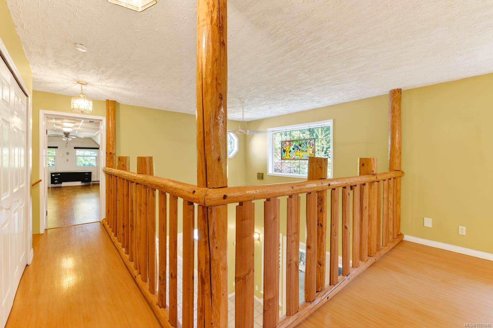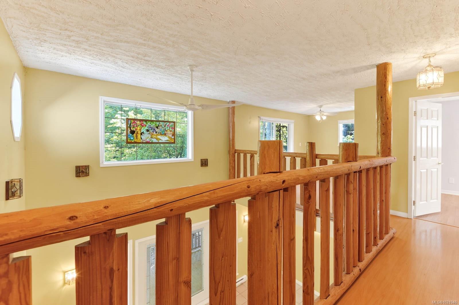 ... character is added to the home with log beams throughout views from every Room featuring an Open Design Living Room with soaring ceilings to the Upper Loft, Dining Room & Kitchen share the ambiance of the Woodstove. Main level Laundry and Bdrm. with its own 4 pc.ensuite as well as French Doors opening to the Full Wrap Verandah. Upper Loft Den/Bedroom, a 3rd Bdrm. with a full 4 pc. Bath. ATV and walking trails have been carved throughout the rugged acreage.